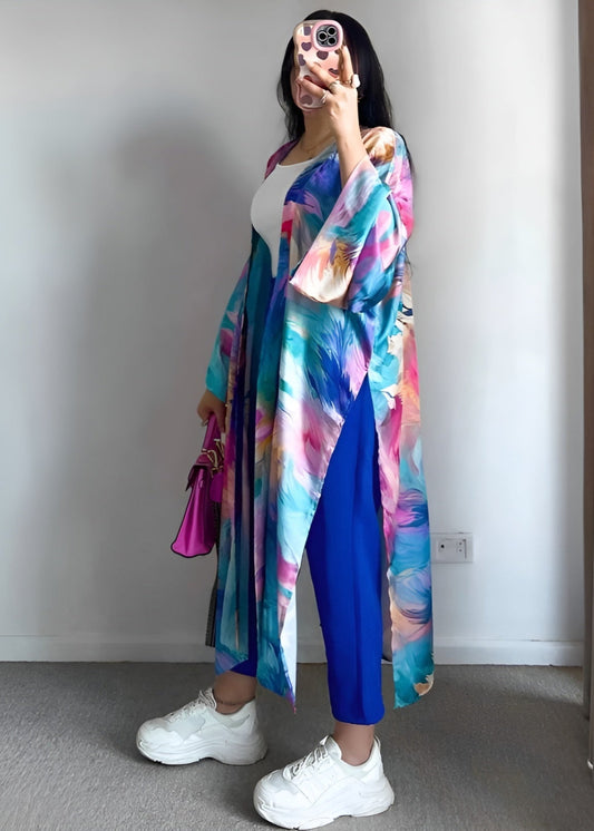Bold Elegance Three-Piece Set – Vibrant Kimono, Trousers & Cotton Top
